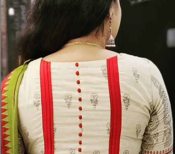 - Buttoned-Up Back Styles: Add a vintage touch with buttons that complement any saree or lehenga.