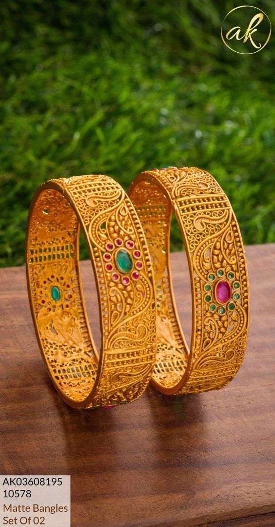 Bangle kada pairs are available in a range of materials, including gold, silver, and platinum. Each metal has its own unique appeal and characteristics. Gold bangle kada pairs exude opulence and are perfect for grand occasions, while silver bangles offer a more understated elegance. Platinum bangles, on the other hand, are known for their durability and modern aesthetic. Consider the occasion and your personal style when deciding on the material and finish of your bangle kada pair.