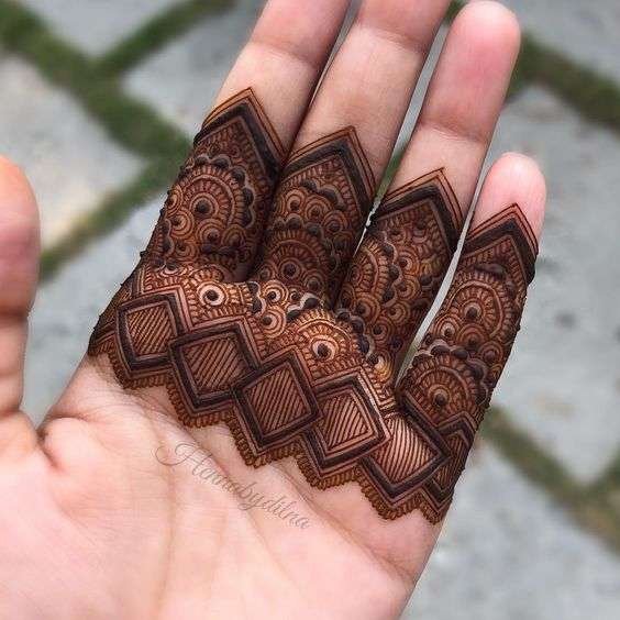 - Modern Fusion: Experiment with a fusion of traditional and contemporary elements in your finger mehndi design. Combine traditional motifs with modern geometric shapes or incorporate modern art forms into the design.