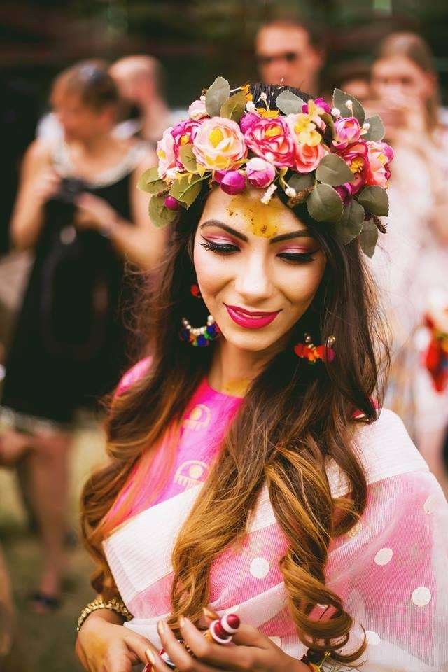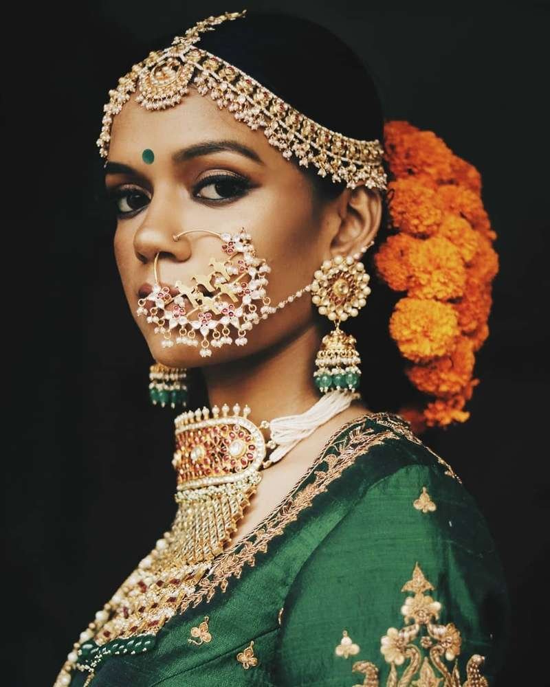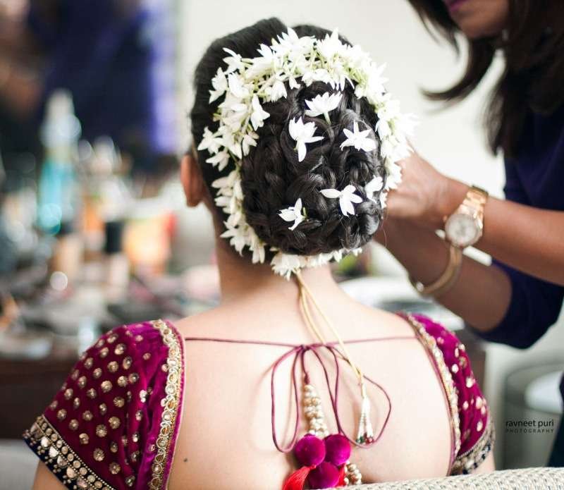 How about covering your regular bun with genda phools all the way. Match your outfit or make a striking contrast like this, whatever you do, you can’t go wrong with this Indian bridal hairstyle.