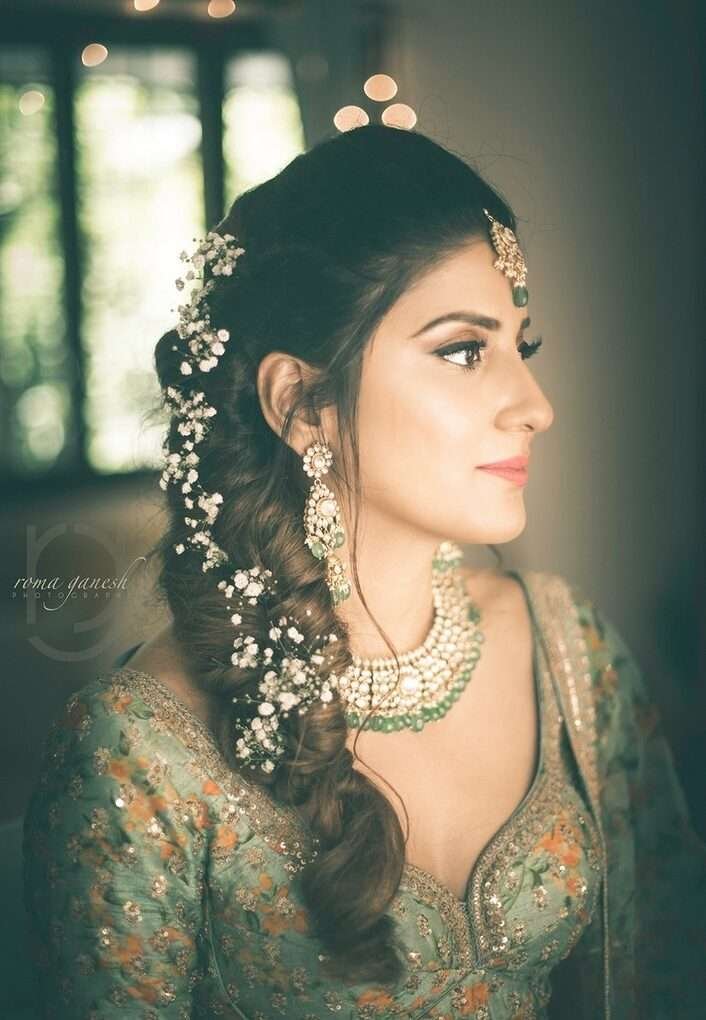So you want to go full dramatic on your wedding day, huh? Well, then there is no Indian bridal hairstyle than a messy voluminous braid. This stunning marriage hairstyle will give volume to your hair and accentuates your bridal look.