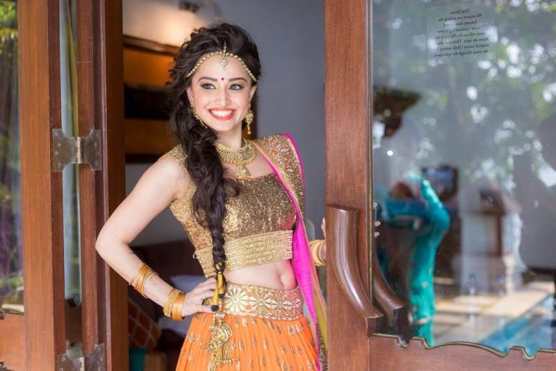 Add some drama to your normal open hair like Nishka Lulla here and get a hairdo as gorgeous as this. Get creative with your crimper and give your long locks some dramatic curls like these and turn heads at your wedding or pre-wedding ceremony.