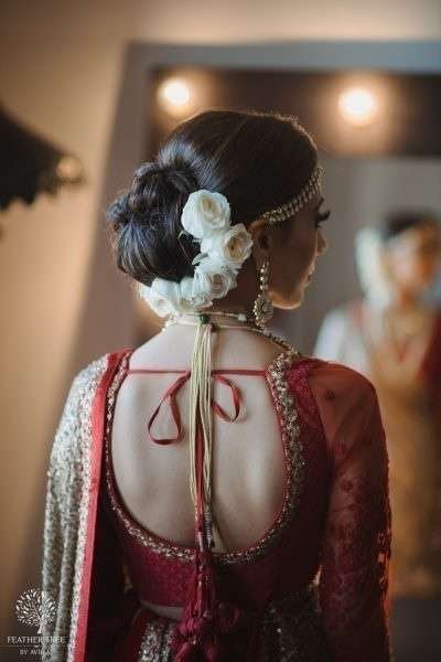 How about covering your regular bun with genda phools all the way. Match your outfit or make a striking contrast like this, whatever you do, you can’t go wrong with this Indian bridal hairstyle.
