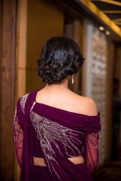 The one hairstyle that has lasted the test of time is the classic bun. Give the classic bun a fun braided updo and see the magic unfold. Its no-fuss vibe is easy to maintain even through long, boisterous sangeet events. This style also frees up your shoulders and back so you can flaunt some interesting bling and ensemble designs, making it a great bridal hairstyle for the reception.