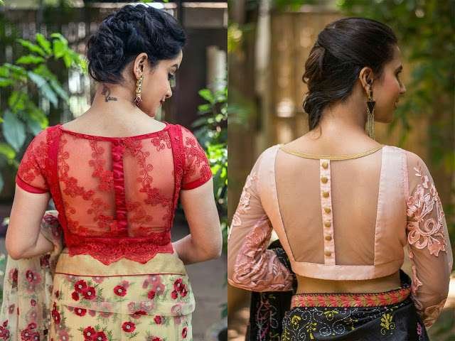 Sheer is one spring summer trend I totally love. For traditional occasions skin show is a big NO and if you want something fun and exciting yet breathable to try this festive season sheer is the way to go with your blouse designs for classy glam saree look . Today in this post our focus is blouse designs with sheer back necks.