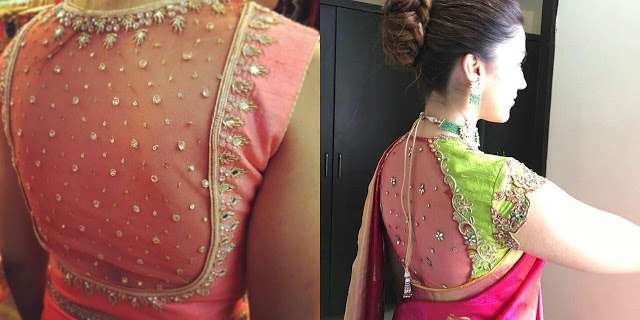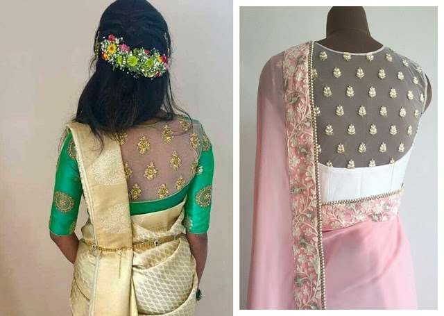Sheer is one spring summer trend I totally love. For traditional occasions skin show is a big NO and if you want something fun and exciting yet breathable to try this festive season sheer is the way to go with your blouse designs for classy glam saree look . Today in this post our focus is blouse designs with sheer back necks.