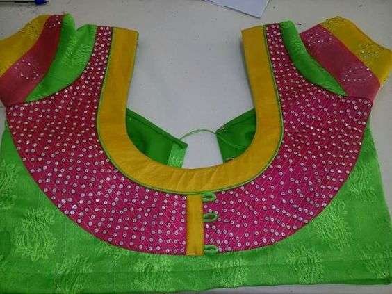33.Green blouse with yellow and pink work