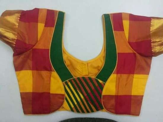 15.Pink with checked Blouse design