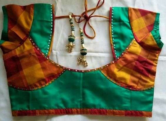 9.Simple work for the Checked blouse