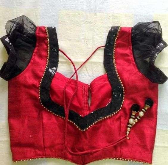 56.Red Blouse with Black Work