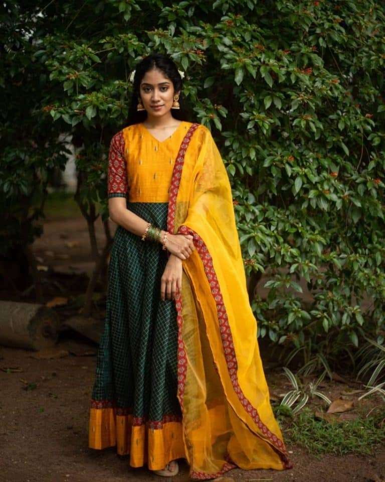To choose the right Ethnic Dressfor your body type, consider the silhouette and fabric. Flowy fabrics like georgette or chiffon work well for curvy figures, while structured fabrics like silk or cotton flatter leaner frames. Experiment with different styles and cuts to find what suits you best.