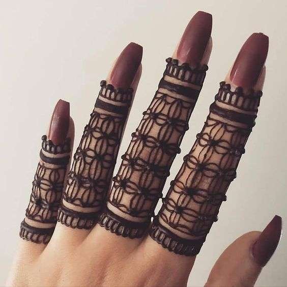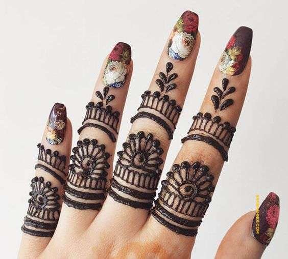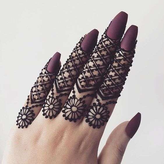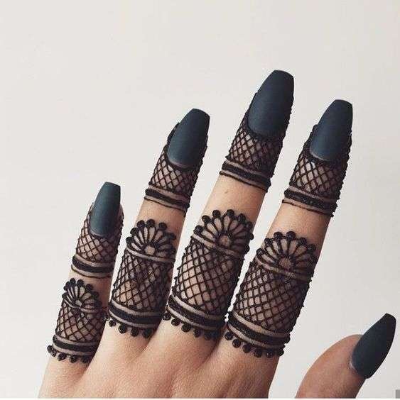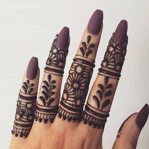 Mehendi Designs Best finger mehndi designs By Neethu Krishnaraj Published On: June 22, 2021 Latest and Stylish Finger Mehendi Designs. Geometric Finger Mehndi Designs. The first one to catch our eye was this beautiful traditional yet modern design.