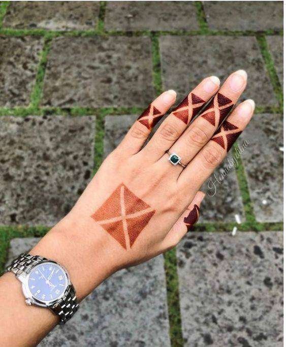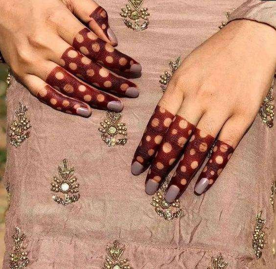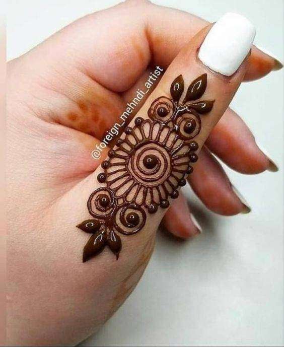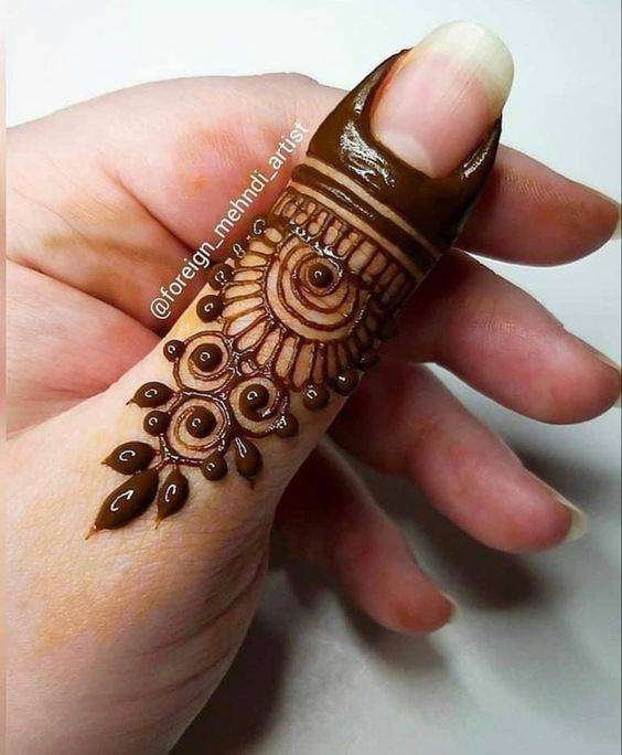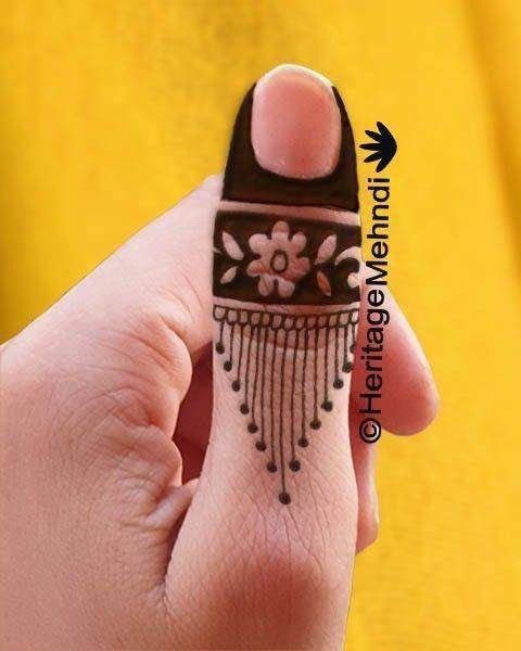 Lines and swirly patterns are the easiest henna elements. And that’s all it takes to adorn your hands with this beautiful finger mehndi design.