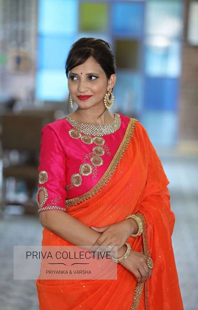 Neck blouse style designs are popular in these days in India & also the designer blouse gives an elegant look with stylish and trendy sarees. Simple and best-designed blouses go well with stylish and casual saree. You can also wear a plain blouse with printed chiffon, cotton, and Georgette saree. The simple and plain blouse looks beautiful by adding some simple details like strings, piping, tassels, or net on the back side of the blouse. Lace and piping are the best things for adding extra creativity to the neckline. You can change or transform your blouse style with adding some extra looks and style like laces, sequins, patch, net, and knot on the back neck. You can also add a latkan and tassels on the back neck for a stylish and trendy style statement.