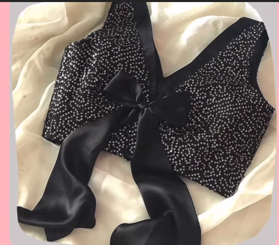 The latest blouse design with a low back bow and elegant details is an opt choice.