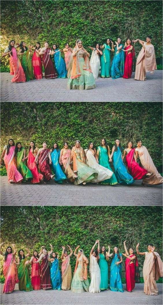 In this approach, bridesmaids wear the same dress style, but each dress is in a different color from the chosen palette. This creates a vibrant and eye-catching display that celebrates individuality while maintaining a cohesive overall look.