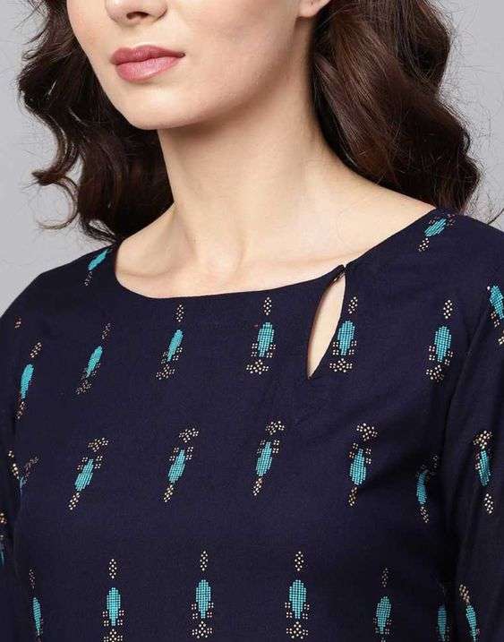 - Features and Styling Tips : The keyhole neck design draws attention to the collarbones and adds a playful element to your kurti. It is ideal for those who prefer a hint of sensuality without revealing too much skin. You can style a keyhole neck kurti with delicate necklaces or let the design speak for itself.