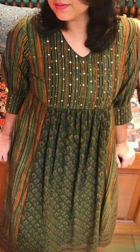 - Features and Styling Tips: The round neck design offers a modest and balanced look. It complements both short and long necks, making it suitable for a wide range of individuals. To make your round neck kurti stand out, you can accessorize it with statement necklaces or pair it with contrasting bottoms.