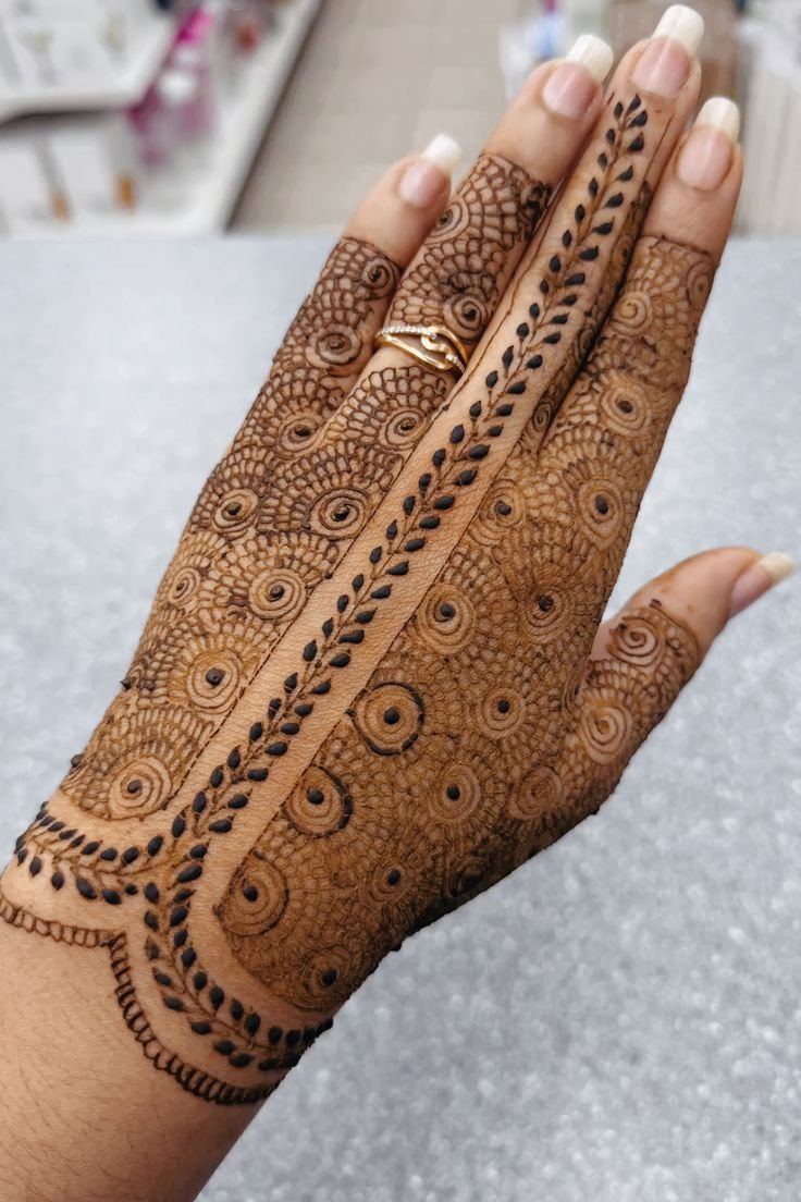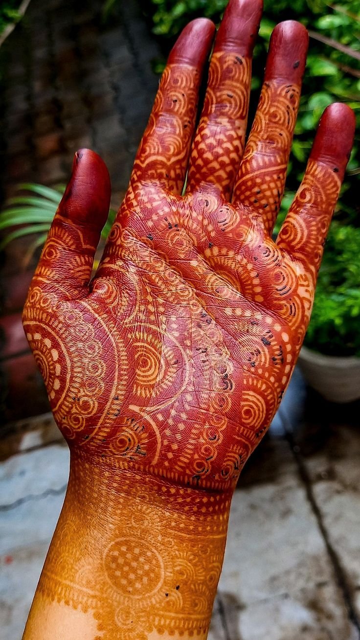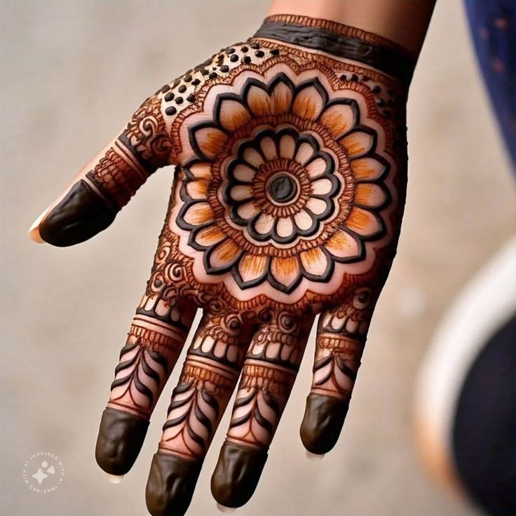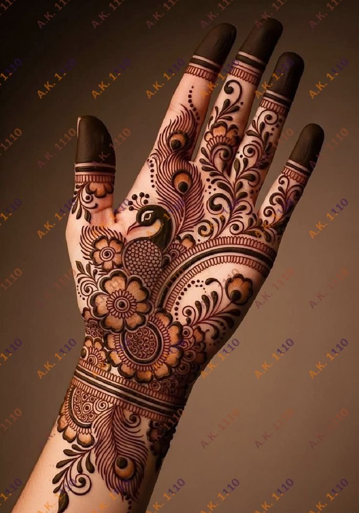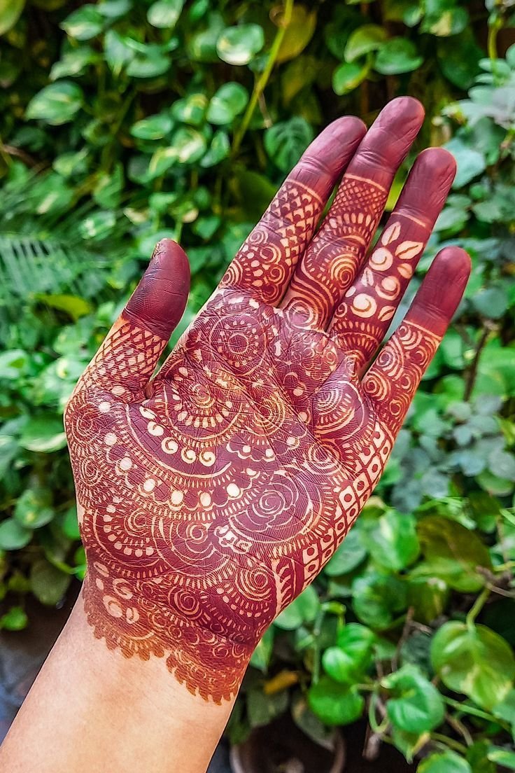 These stunning full-hand mehandi designs beautifully blend tradition with modern artistry. Each intricate pattern, from circular mandalas to delicate floral motifs, showcases the timeless charm of henna art. Perfect for brides, festivals, and special celebrations, these designs highlight grace and creativity with every stroke. The deep, rich color of the henna adds a touch of elegance, making your hands the centerpiece of your look.