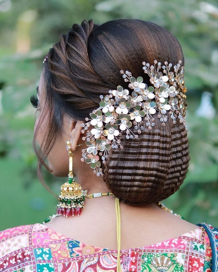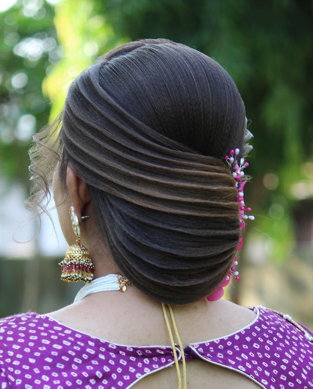 If you’re looking for a hairstyle that feels classy, unique, and picture-perfect, this pearl-studded low bun is a beautiful choice. It’s elegant without being overdone and works wonderfully for anyone who wants to make a lasting impression at a special event.