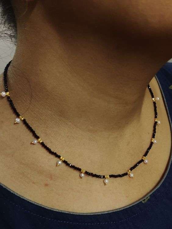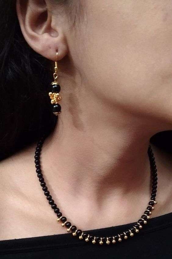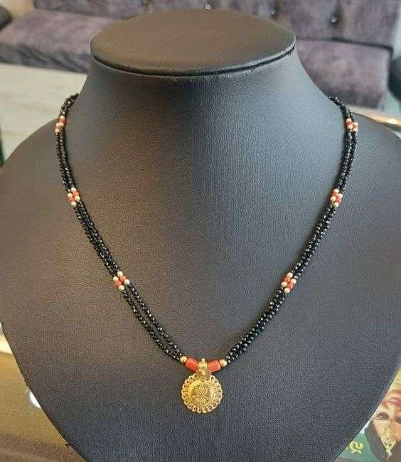 - Classic Black Bead Mangalsutra: With rich black beads and a minimalist gold chain, this mangalsutra ki design is perfect for brides who appreciate traditional simplicity with a modern twist.