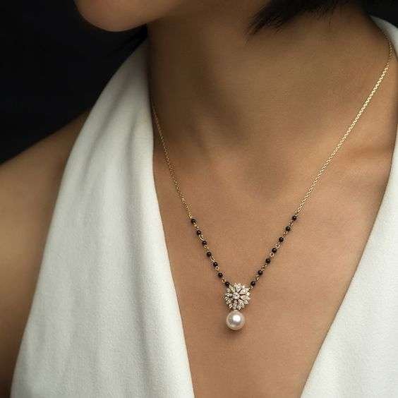 - Contemporary Minimal Mangalsutra: Embrace modernity with this simple yet striking mangalsutra new design that blends geometric patterns for a sleek and sophisticated look.