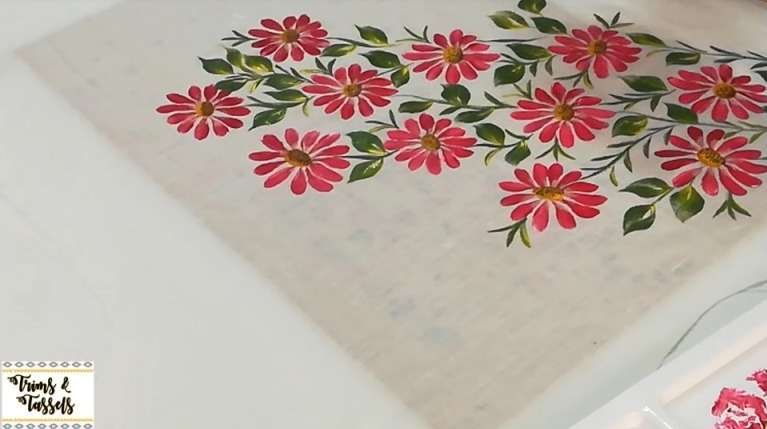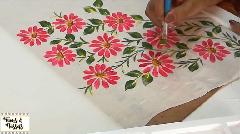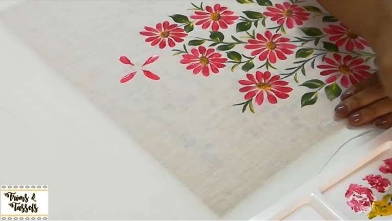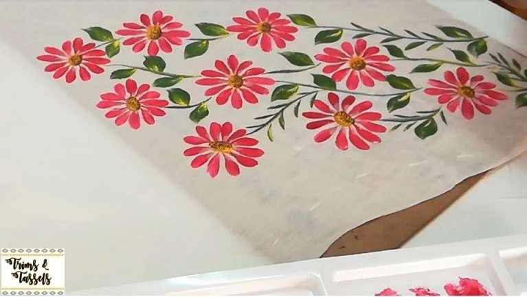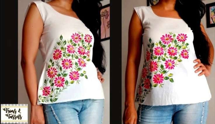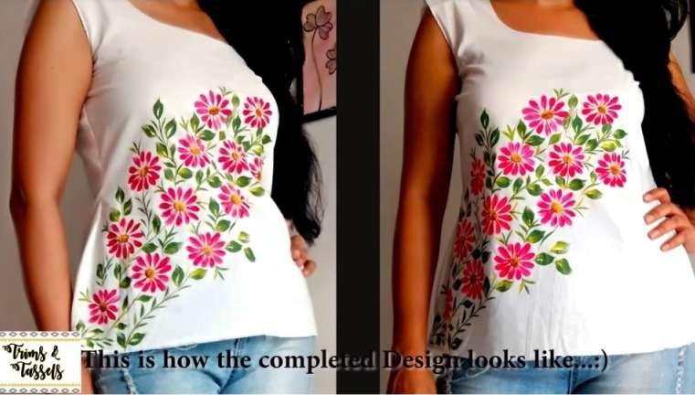 Check out an easy way to paint Daisy Flowers on White colour Top. Very Beautiful side corner fabric painting design