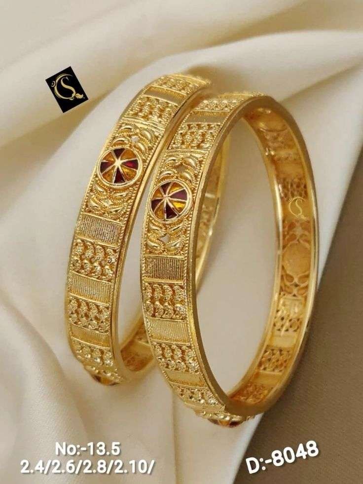 Discover our curated selection of 22 exquisite gold bangle designs, ranging from ethnic classics to modern lightweight options. These images capture the rich diversity of styles available. Share your favorites in the comments section below!