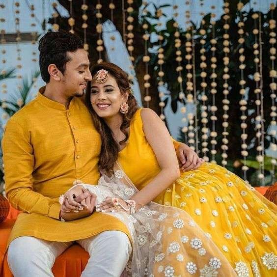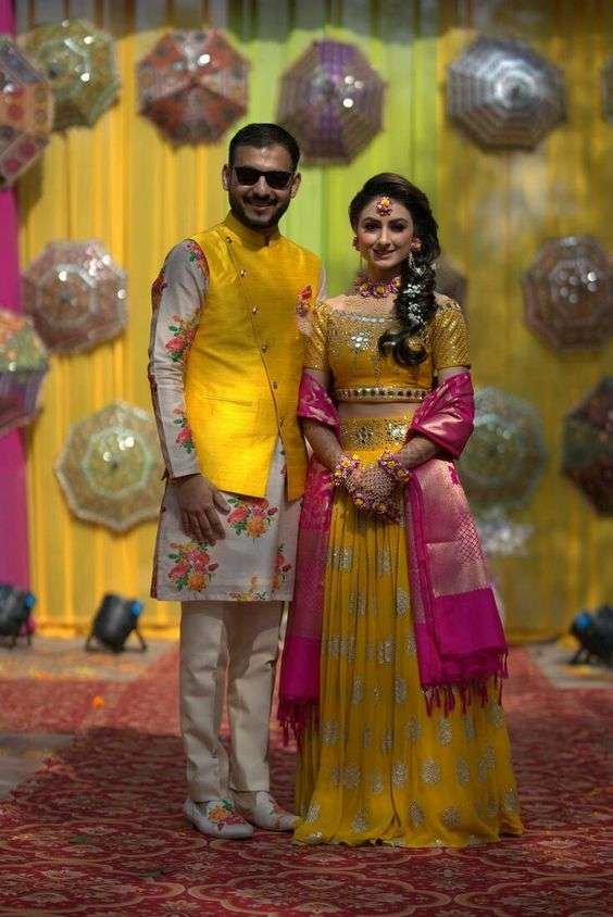 Haldi function couple outfit idea