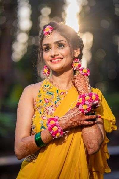 Home Designer dresses Haldi girls poses