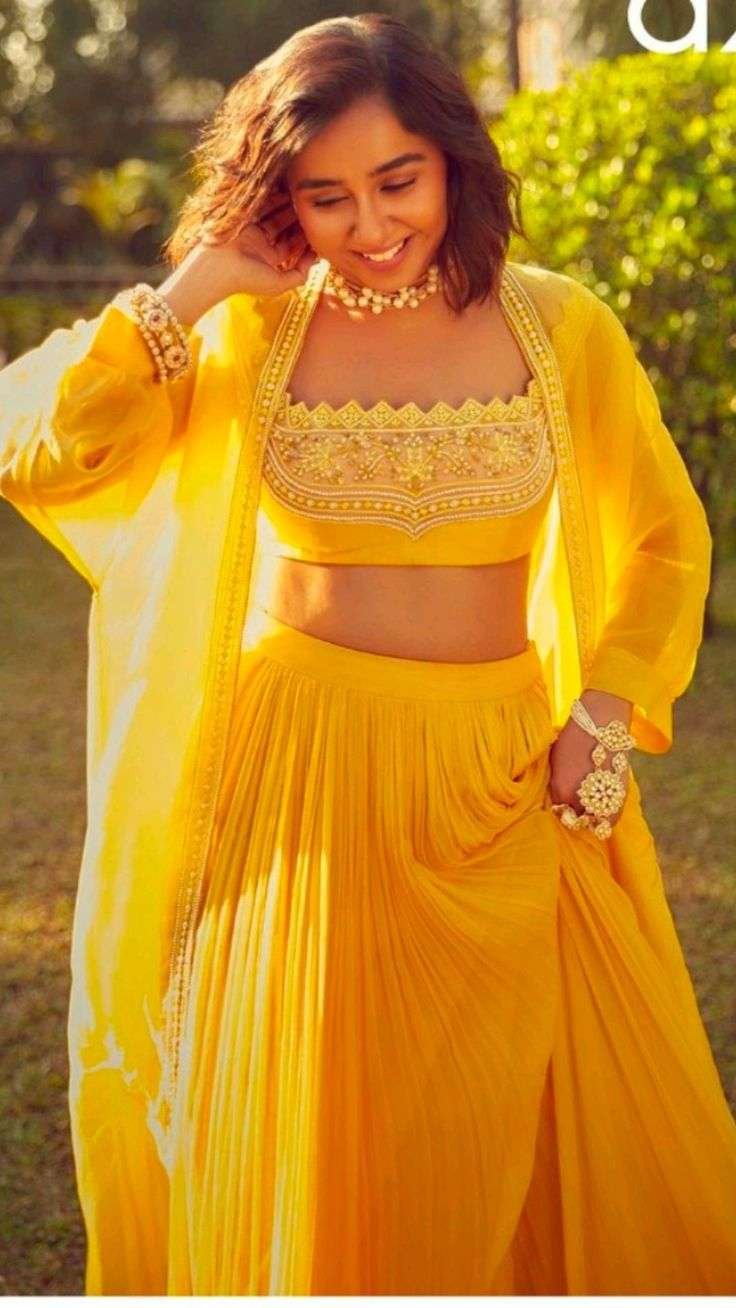 In conclusion, choosing the right Haldi Outfit Ideas is an exciting part of wedding preparation, allowing brides to fuse personal style with tradition. The variety of haldi dress simple options ensures that every bride can find a style that reflects her individual taste while fitting perfectly within the festive atmosphere. Whether opting for a grand gown or a modest lehenga, the goal is to shine with elegance and sophistication.