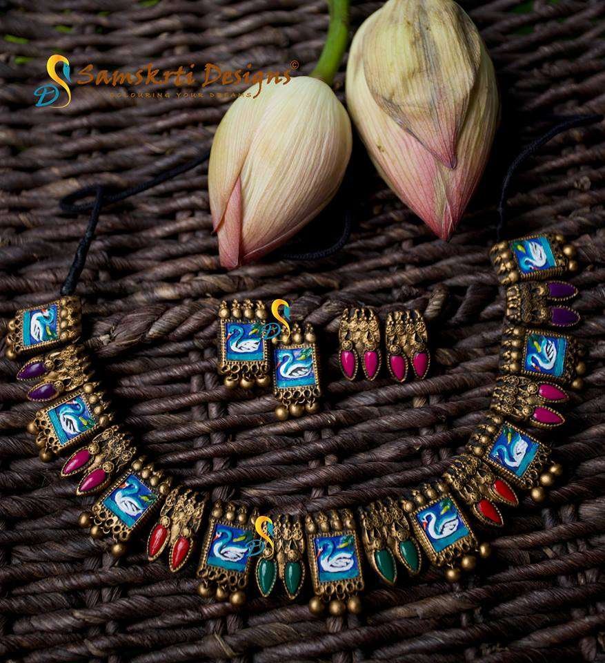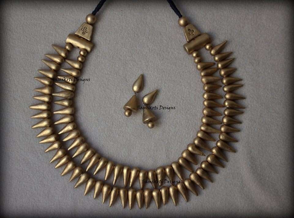 Terracotta literally means ‘baked earth’ and is made from natural clay, giving it a reddish-brown colour. It may be glazed for durability or to add colour. Being waterproof and sturdy, several ancient sculptures in this clay are still intact. It was used traditionally to create figures of deities on festive occasions and ceremonies besides its use in jewellery and handicrafts. The temples of Bishnupur, Murshidabad, Birbhum and Hooghly in West Bengal are superior examples of terracotta creativity. Terracotta earrings are a favourite of college goers.