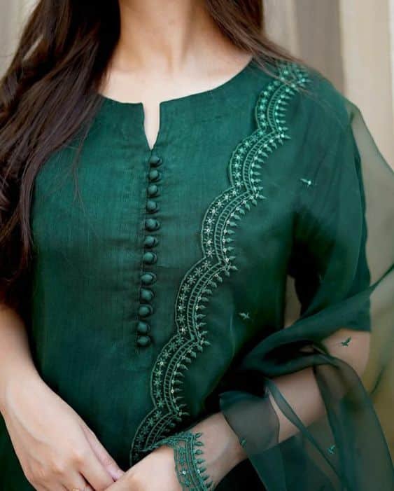 Traditional kurti neckline patterns often exude elegance and grace. They showcase the rich cultural heritage of different regions and can include: