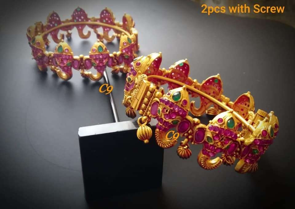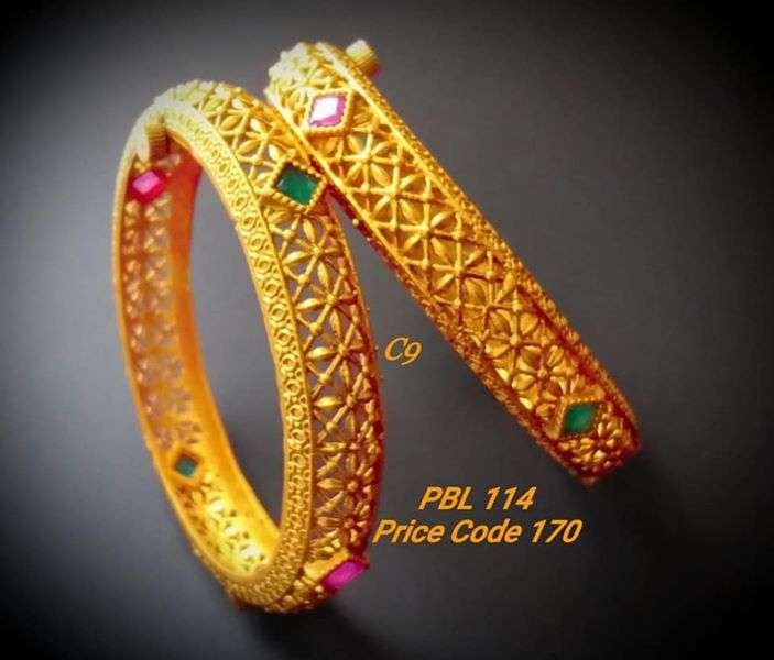 Add a touch of luxury with gold bangles embellished with diamonds, rubies, or emeralds. Ideal for special occasions and grand events. - Cuff-Style Gold Bangles