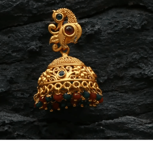 - Traditional Jhumka Designs: Traditional jhumka designs embrace the classic elements and motifs of Indian jewelry. They feature intricate filigree work, floral patterns, peacock motifs, and dangling beads. Traditional jhumkas are typically crafted in gold or silver and are favored for their timeless elegance.