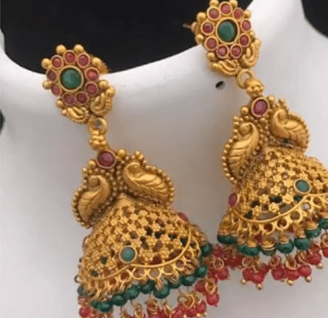 - Beaded Jhumkas: Beaded jhumkas incorporate colorful beads made of glass, crystals, or semi-precious stones. These earrings add a playful and vibrant touch to any outfit. Beaded jhumkas are available in a wide range of designs, catering to different style preferences.