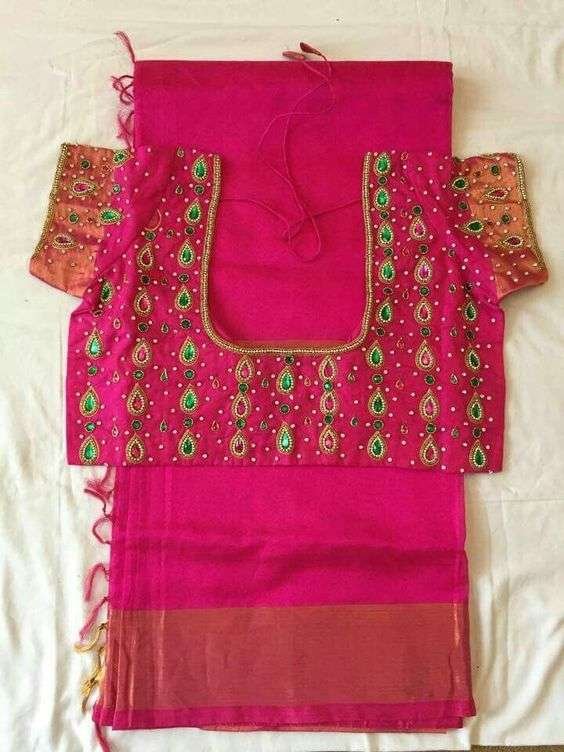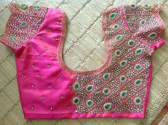 43. Heavy work kundan pink and green stones maggam work blouse