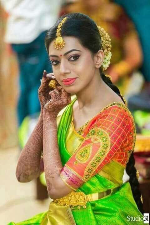 1.Green and Pink Thilagam stone work blouse