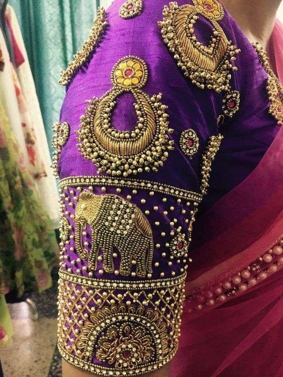 2. Round and Elephant design maggam work blouse