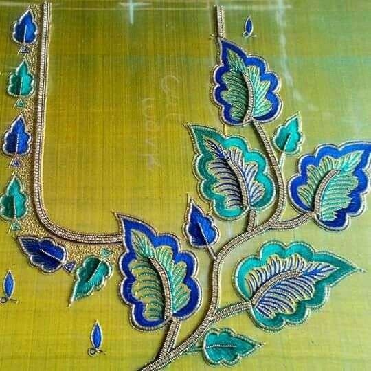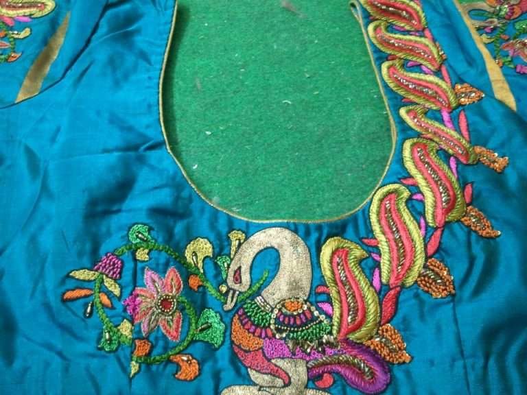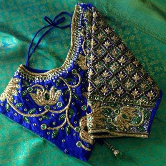34. Blue blouse with green jardosi flower design