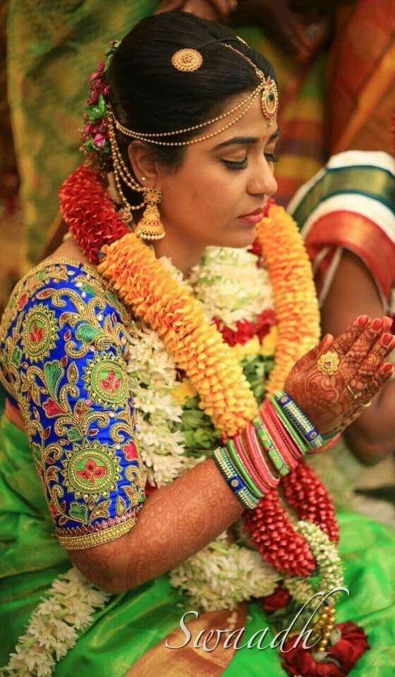 38. Blue and green blouse maggam work blouse