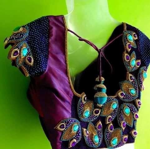 37. Real peacock feather maggam work blouse