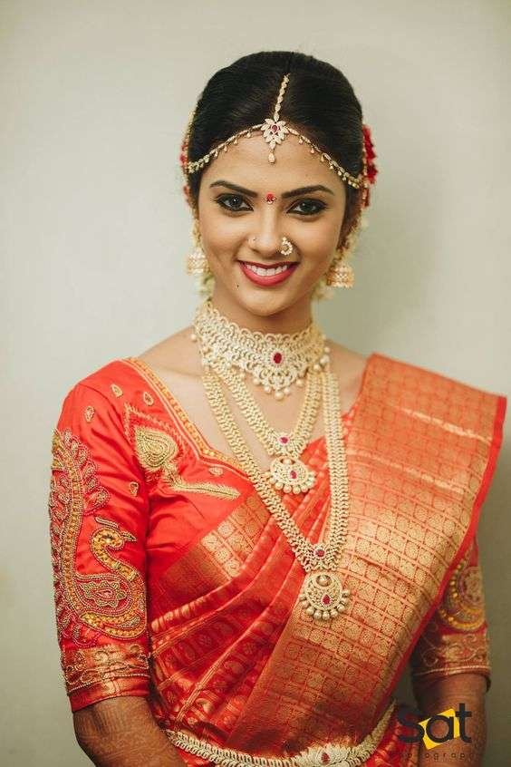 50. Orange Bridal blouse with maggam work