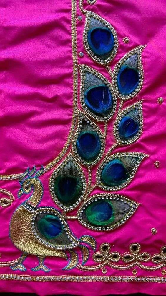 Maggam works are now the in-thing in the world of a fashion as they give an amazing look to any garment. This is one of the most popular types of embroidery also called aari embroidery Maggam work can be done in saree’s, Lehnga ’s, choli, half-saree or on any dress material which you like. Maggam work can be done with threads, beads, special stones, jardosis. Maggam work artist says that it will take eight hours for completing simple maggam work and two to three days for complicated work. For putting maggam we need thread, frame, needle, and scissors. Artist will trace the design on the material which he wants to put then he will start the work.