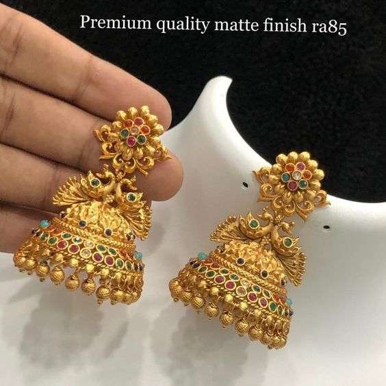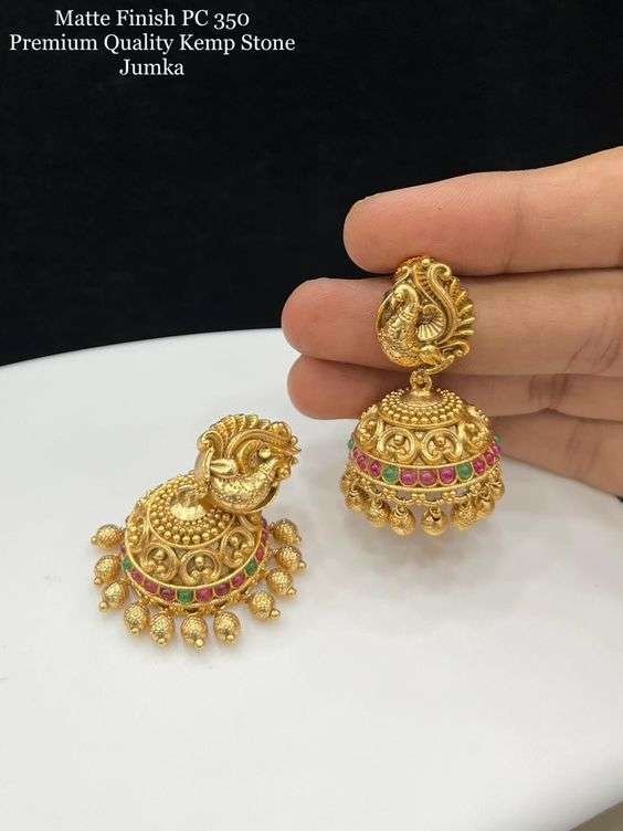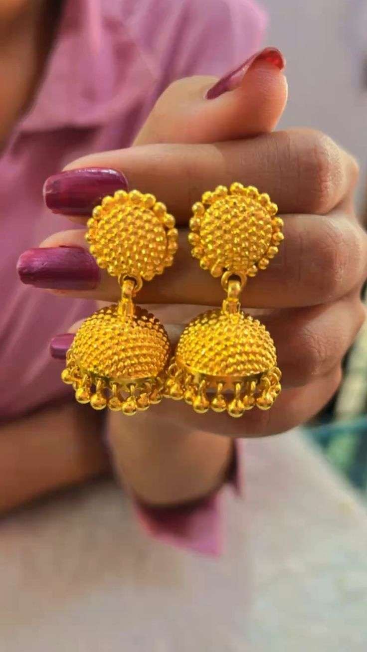 - Elegant Gold-Plated Jhumkas: These jhumkas are a classic example of lightweight jhumka designs, offering elegance and style with a sophisticated gold-plated finish.