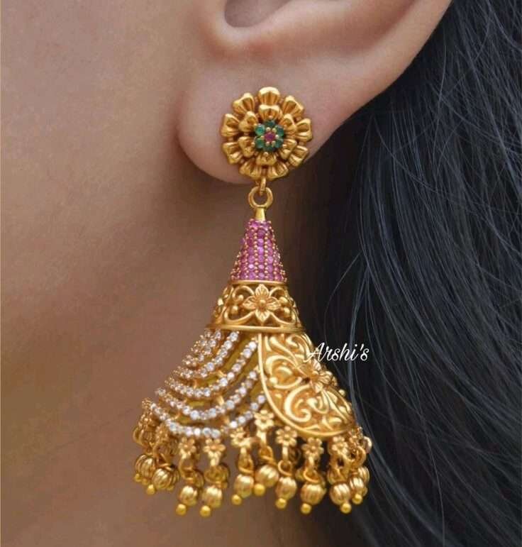 - Gemstone Embedded Jhumkas: These trendy jhumka designs incorporate vibrant gemstones, blending traditional charm with a splash of color for a distinctive look.