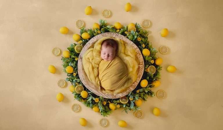 New born photography in yellow color