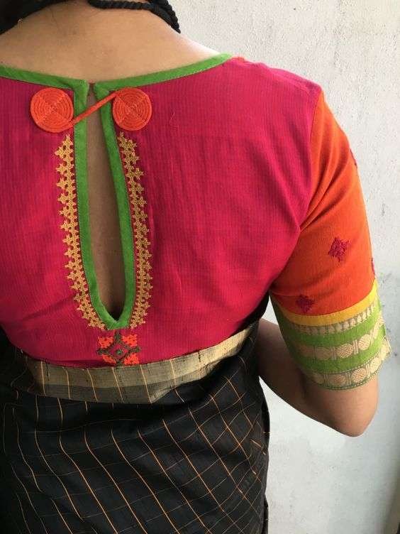 For a daring, fashionable statement, backless blouses with tassels, tie-ups, or embellishments stand out. Pair with lightweight sarees to let the blouse shine.