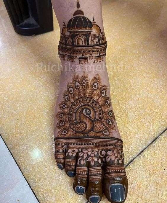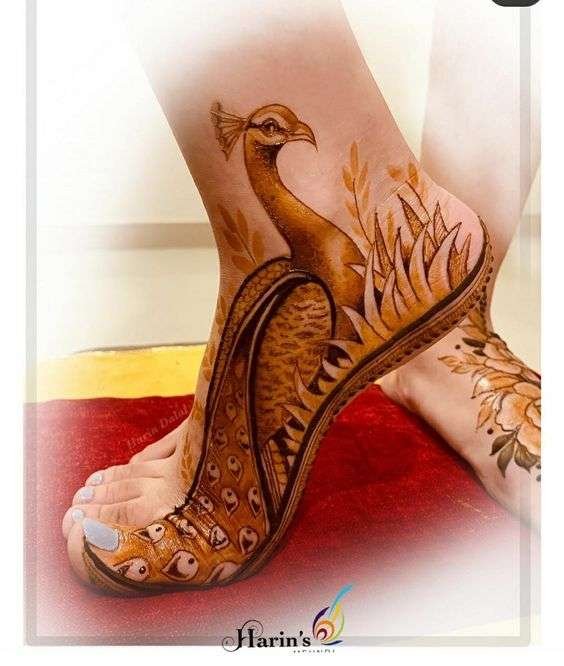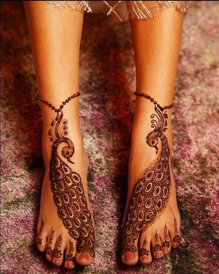 These intricate peacock patterns with ornamental feathers, floral patterns and leaves beautify the feet with extraordinary result.