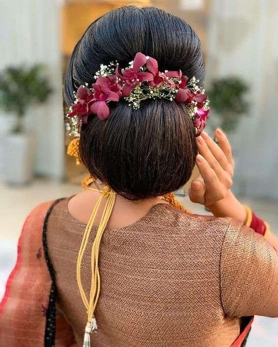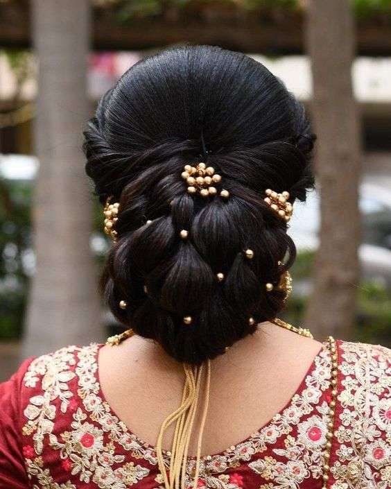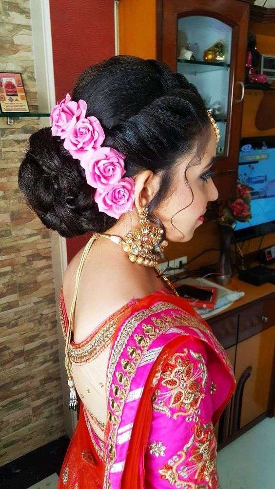 Traditional Bridal Buns A bun is an ideal hairstyle for Indian wedding functions. It is a classic bridal hairstyle for the wedding ceremony.
